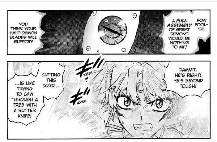 Even if you decide to scrutinize Inuyasha’s intelligence or say he could open with another move, not only he'd know Kurama is a threat frame one by his smell and noticing his bloodlust, but he has consistently used this attack whether he’s fighting some random root (in the anime version) or rock yōkai, or much bigger threats like Naraku and the Grim Comet. Hell, in the manga version of Yashahime, it’s his bread and butter, to the point of opening with it. Inuyasha might be a bit dense sometimes, but he’s not that stupid to a point he won’t use one of his main attacks knowing he needs it the moment he smells Kurama. Not only does he show cleverness during multiple moments in the series, he is a character that actively wants to end fights as fast as possible, even if it means going completely overkill when not needed. In fact, criticizing “in-characterness” for Inuyasha actually makes it worse when you look at Kurama.