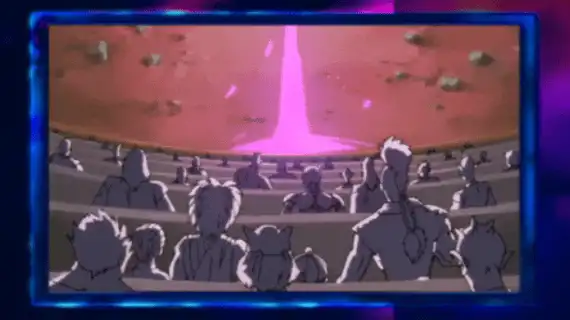 After defeating the Bat Yōkai Taigokumaru, which specialized in creating really strong shields with his yōki, Tessaiga absorbed its power and turned red. But unlike Taigokumaru, Inuyasha cannot create barriers, but instead slices and breaks through them through a disrupting effect. Being able to slice through some of Naraku’s barriers, chains which protected the gates to Netherworld or dimensional barriers to other worlds such as Kaguya’s Dream Castle.