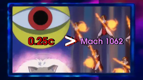 Let’s go under the interpretation that Kurama scales to the Okunen Tree. That would give him baseline scaling to 0.01c. Hachi’s feat would be 25.1x faster, and Inuyasha would massively upscale this. Without that, the best Kurama would get would be massively upscaling early Yusuke’s Mach 580 - 1062 feat. Conversely, Hachi’s feat would be 206.57 to 378.244x faster. While it’s true that Kurama would upscale that a lot, there is zero guarantee that he would get even close to closing the gap, especially when the feat he’d be trying to catch up to is performed by Inuyasha’s version of Puar from Dragon Ball. At any rate, it’s not hard to see why Inuyasha is blitzing reactions here, even considering Kurama’s high end.